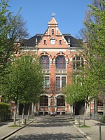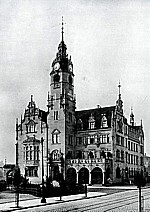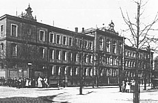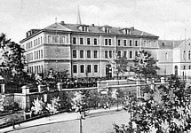 1945 zerstört. Die Grundsteinlegung für den Neubau, entworfen von Baumeister Pohle, fand am 13. März 1888 statt. 1894 folgte noch ein Ergänzungsflügel an der Nordseite des Gebäudes. Neben einer Aula und der